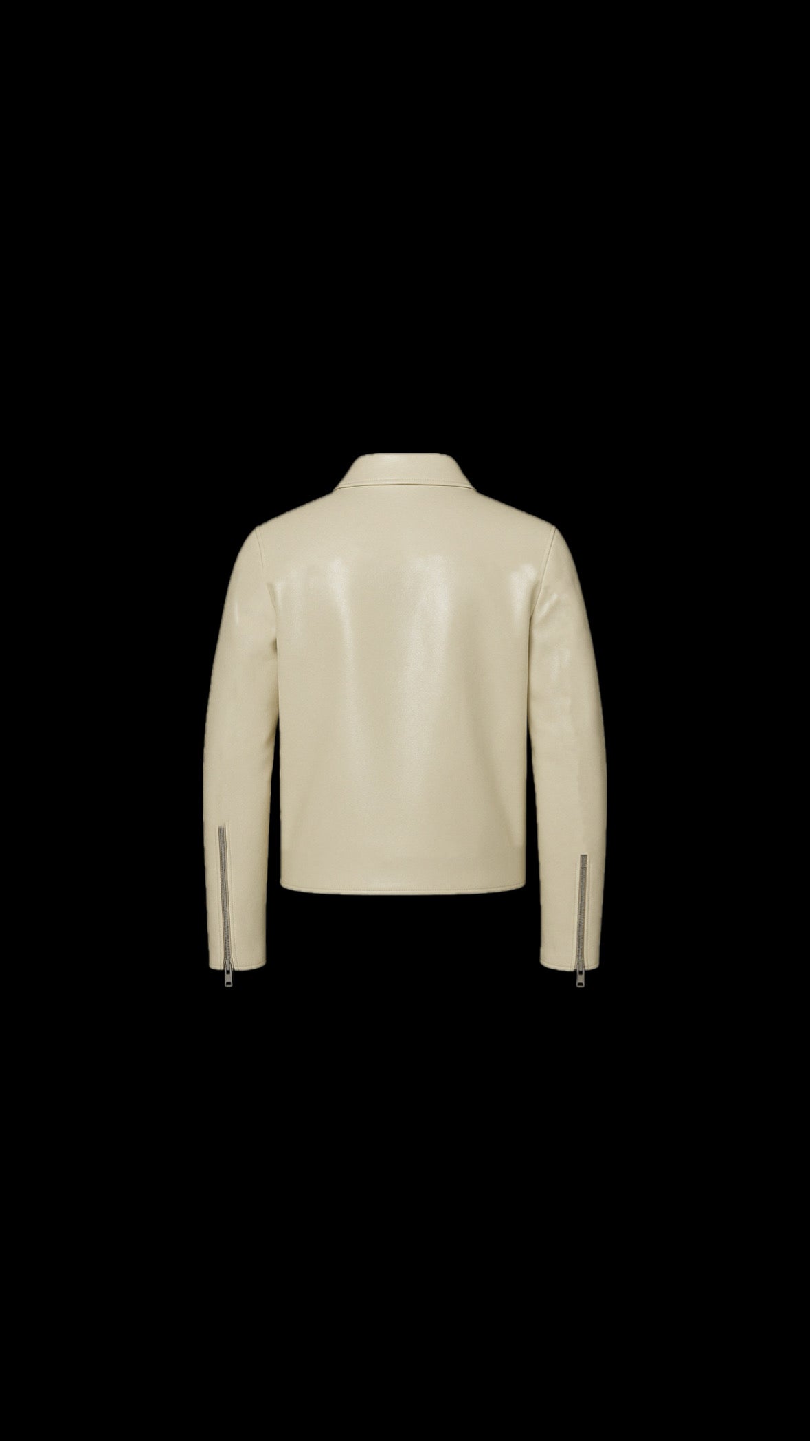 La veste Crème Signature incarne l’élégance minimale de la maison KAYROSE. Confectionnée dans un cuir vegan haut de gamme, sa coupe droite et sa teinte crème subtile en font une pièce forte, sans excès. Les finitions zippées aux manches et la fermeture centrale accentuent son esprit fonctionnel et contemporain.