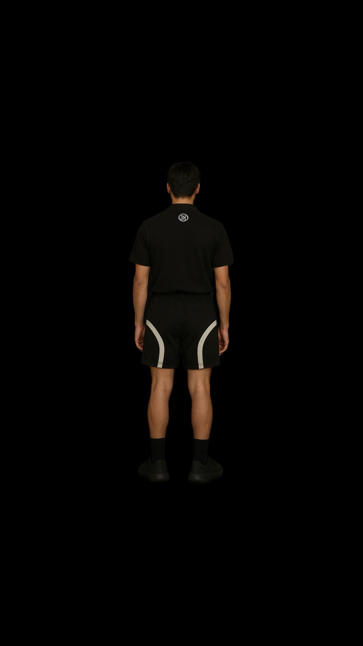 Ensemble en nylon dense, coupe droite. Haut zippé à col montant, taille élastiquée. Short structuré. Broderies ton sur ton.